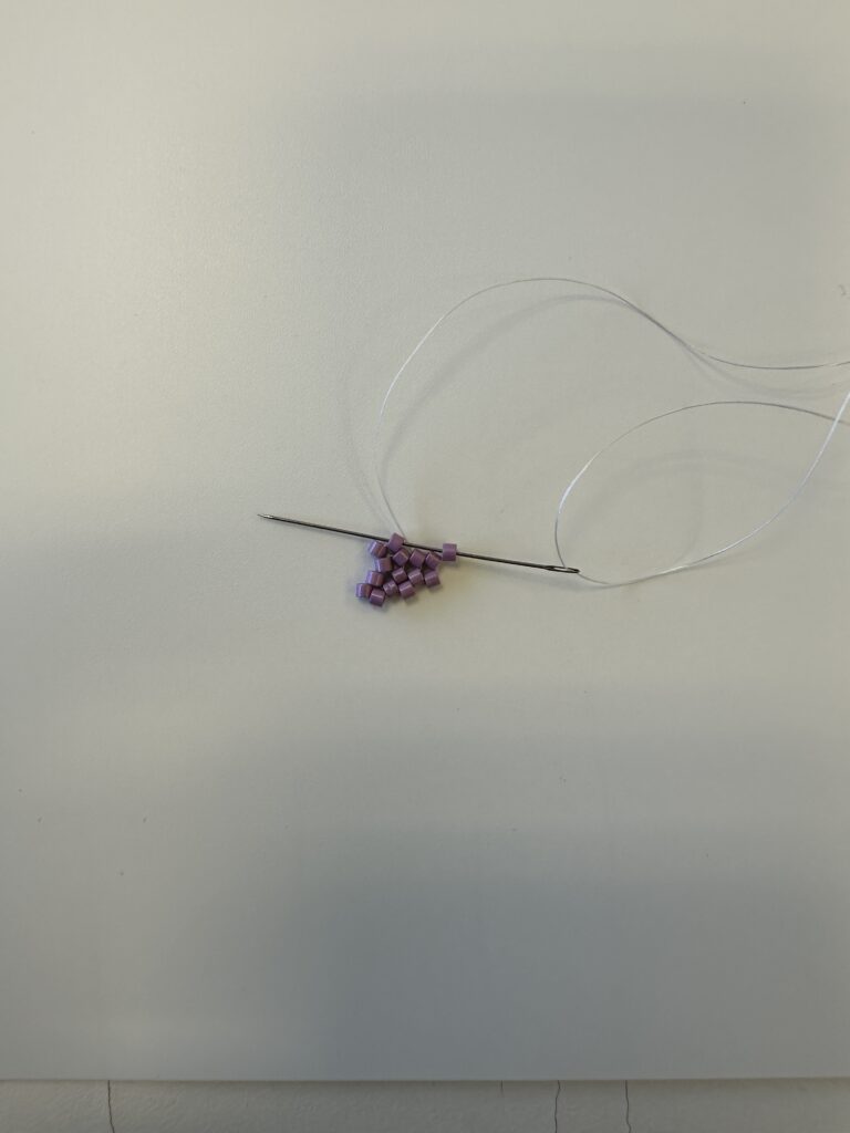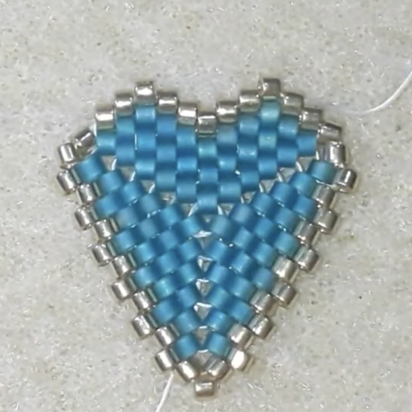 Durante el taller del 5 de febrero de 2025 realizamos estos pendientes en forma de corazón utilizando la técnica peyote triangular.